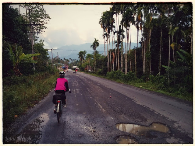 จากพุนพินปั่นเลียบทางรถไฟมาเรื่อยๆ ตรงไหนไม่แน่ใจก็เปิดกูเกิล แม็พ เช็ค ถ้ายังไม่ชัวร์ก็ถามชาวบ้าน สักพักก็ถึงสถานีรถไฟเขาหัวควาย ถนนส่วนใหญ่ลาดยางและคอนกรีต มีบางช่วงยังเป็นลูกรัง สองข้างทางเป็นสวนยาง ปาล์มและผลไม้ร่มรื่น มีรอยฝนตกเมื่อคืนชุ่มดิน บรรยากาศชวนปั่นมากๆ